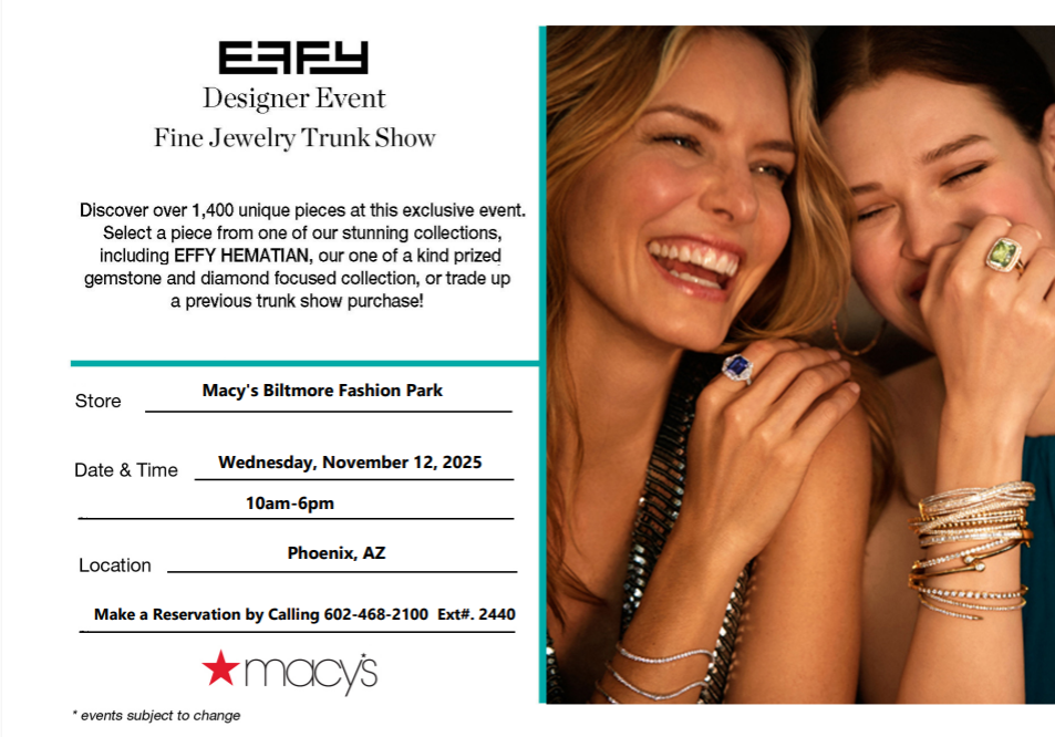 EFFY Fine Jewelry Trunk Show at Macy’s Nov 12 10:00 am - 6:00 pm EFFY Fine Jewelry Trunk Show at Macy’s