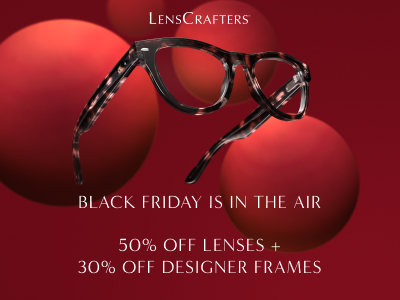 Save 30% off select frames and 50% off lenses, when purchasing a complete pair. Complete pair purchase required, savings applied to lenses. Non-sun purchases require anti-reflective prescription lenses to receive 30% off frame. When purchasing prescription lens receive 50% off the lenses in combination with 30% off frames. Offer cannot be combined with vision...